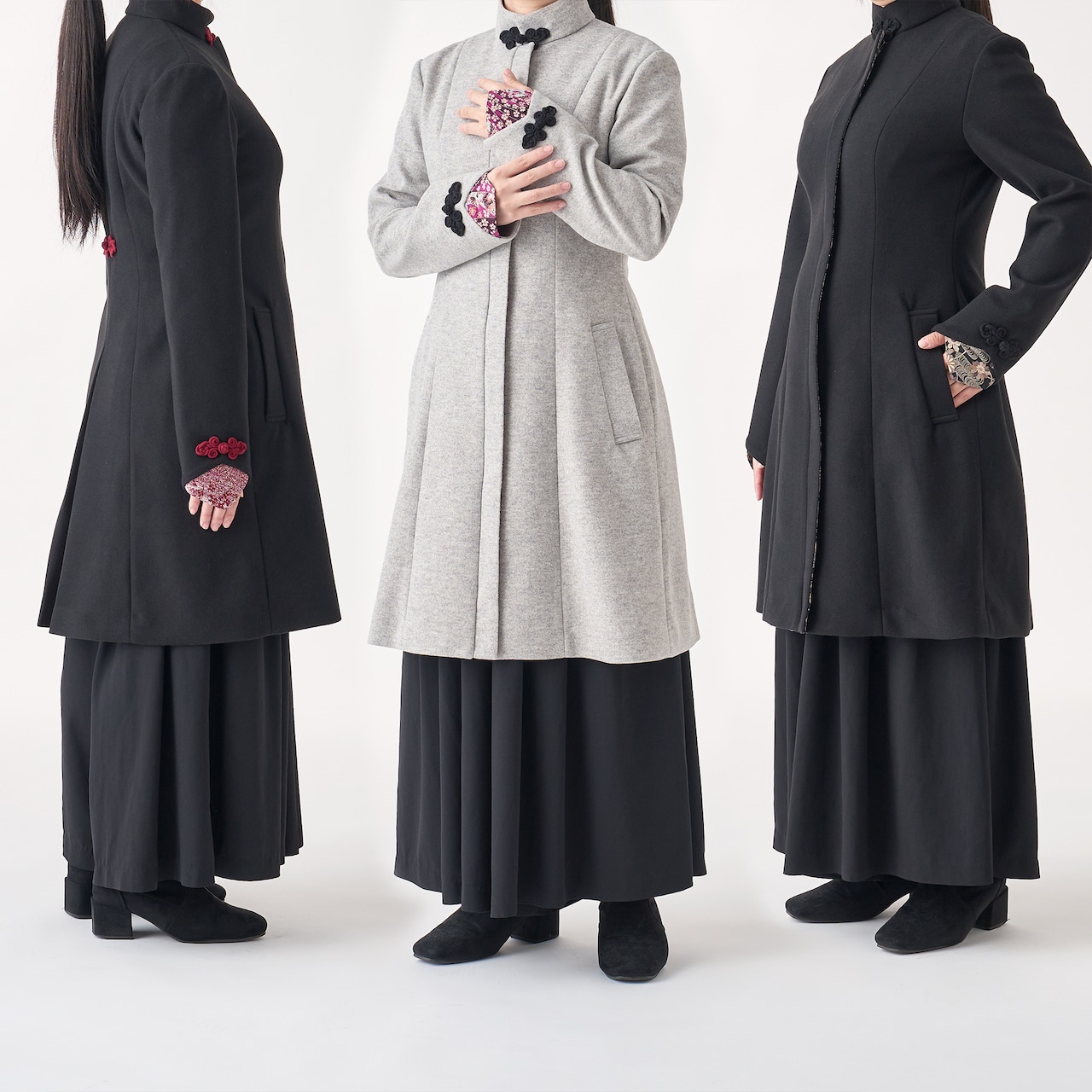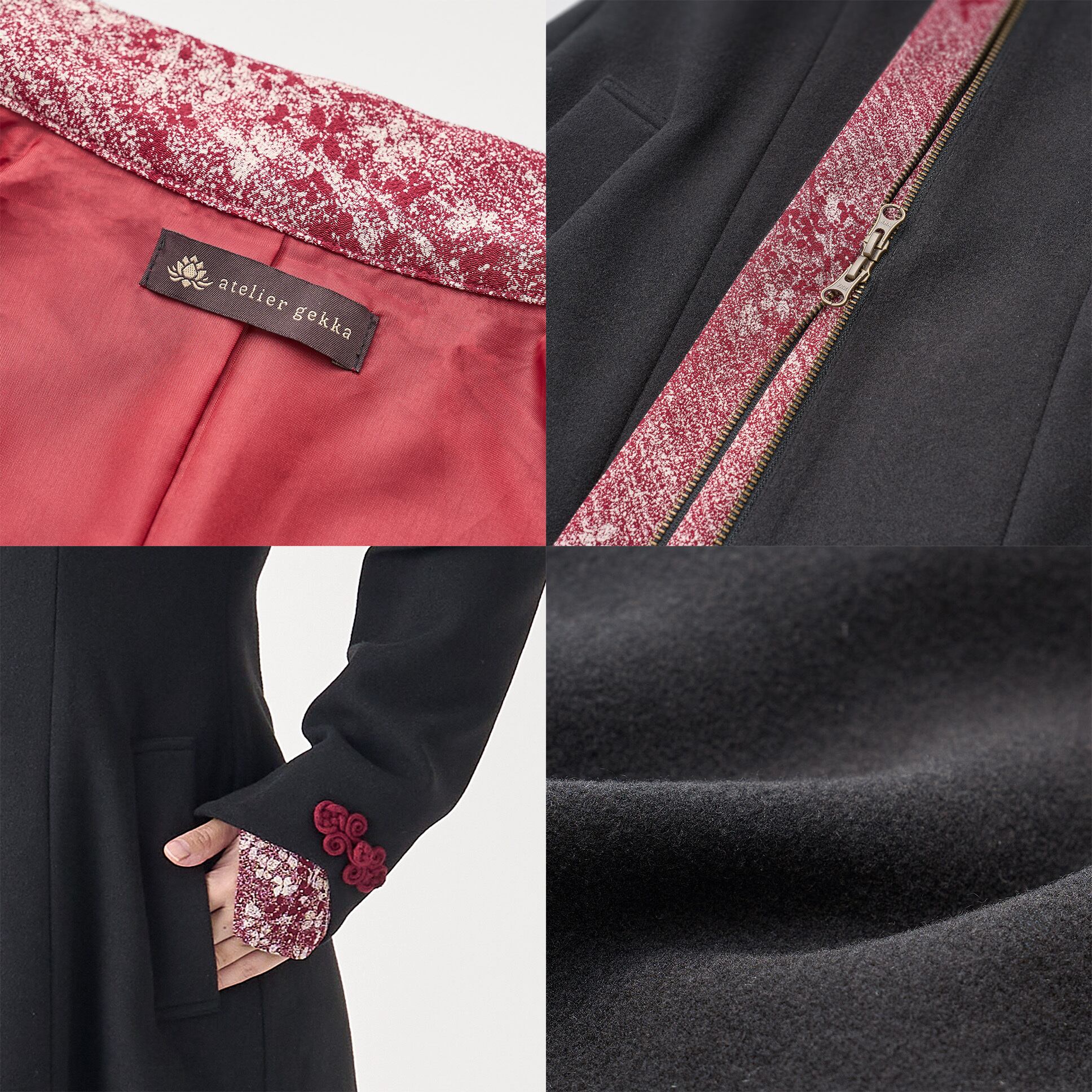 コート レディースコート 秋冬コート 秋冬ファッション 秋冬コーデ おしゃれ オシャレ お洒落 和柄 和風 チャイナ風 スタンドコート スタイリッシュ かっこいい かわいい 和漢折衷 ジャパニーズファッション